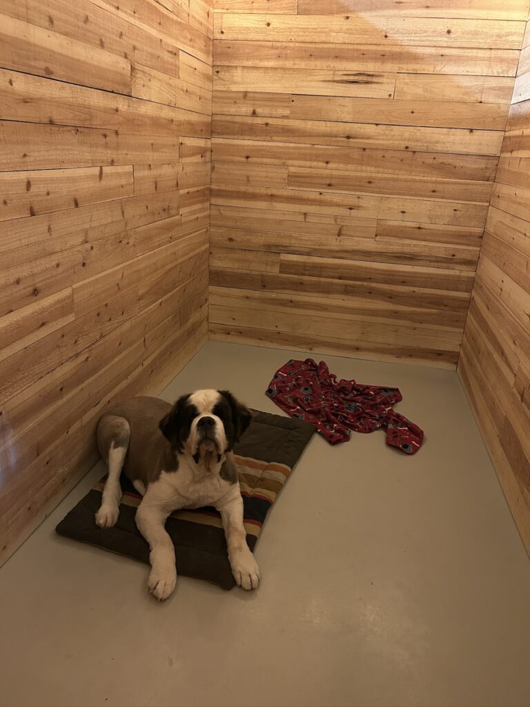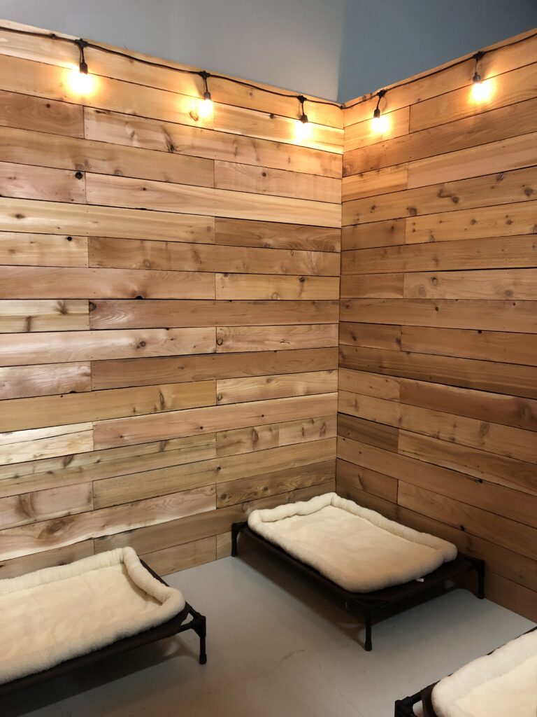 Medium Cedar suites are spacious 8′ x 8′ private rooms that offer the most privacy and comfort for your dog. With raised beds, subtle lighting, a window, and cedar walls, your dog will feel more at home during their stay. Up to 3 dogs can comfortably stay in a Medium Cedar Suite at a time. Add a plush pad to make your dog extra cozy during their stay!