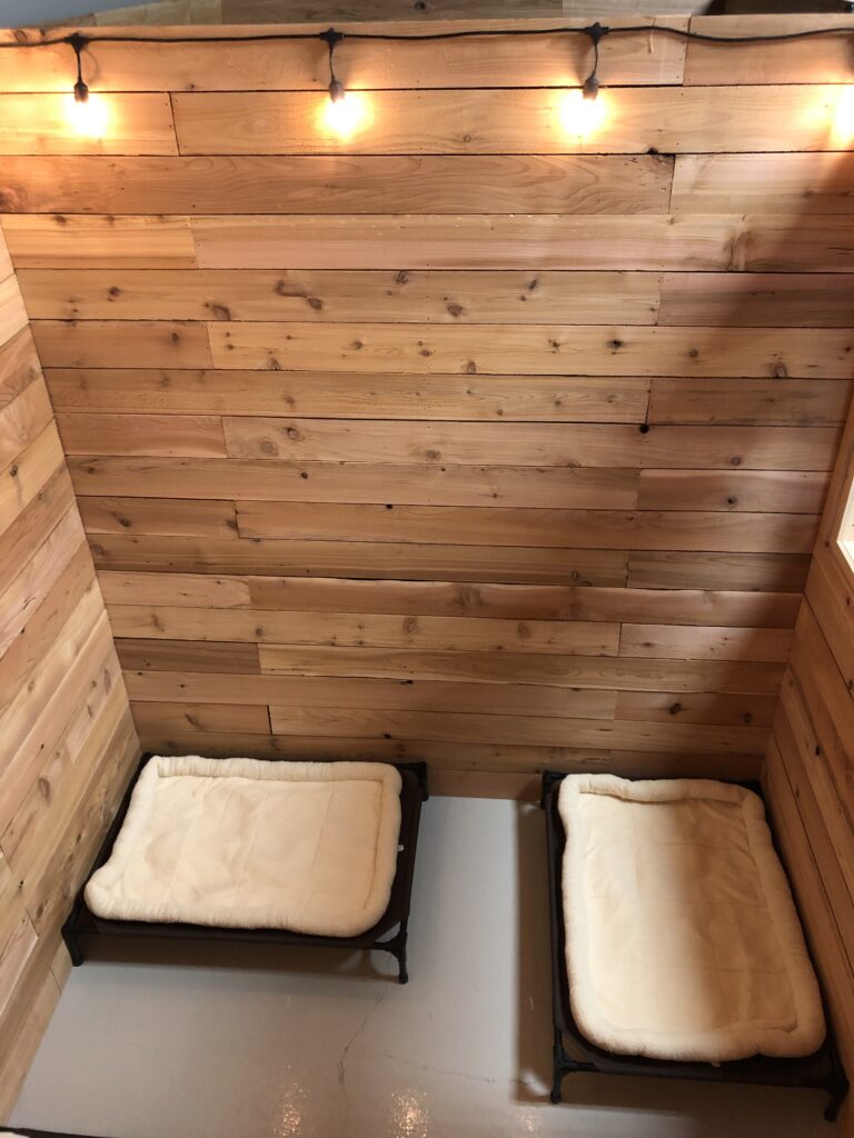 Petite Cedar suites are 6′ x 6′ rooms that offer the most privacy and comfort for your dog. With raised beds, subtle lighting, and cedar walls, your dog will feel more at home during their stay. Only 2 SMALL dogs can comfortably stay in a Petite Cedar Suite at a time. These suites are perfect for 1 medium sized dog or 1-2 small dogs. Add a plush pad to make your dog extra cozy during their stay!